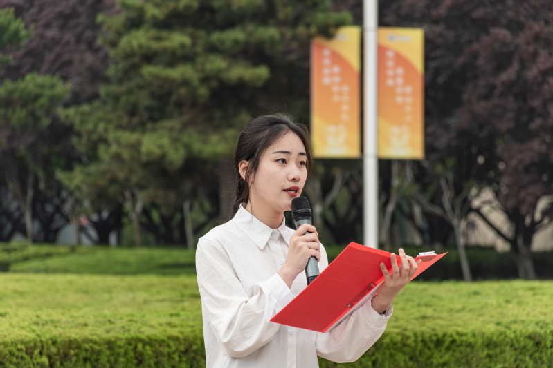 学校“公益之星”、本研材料2021级学生晋婕婷在演讲中回顾了共青团的发展历程与中华民族的峥嵘岁月,号召广大材料学子要树立总体国家安全观,不负韶华,勇于担当,勇做科技创新、乡村振兴、绿色发展、社会服务、卫国戍边的排头兵和生力军。