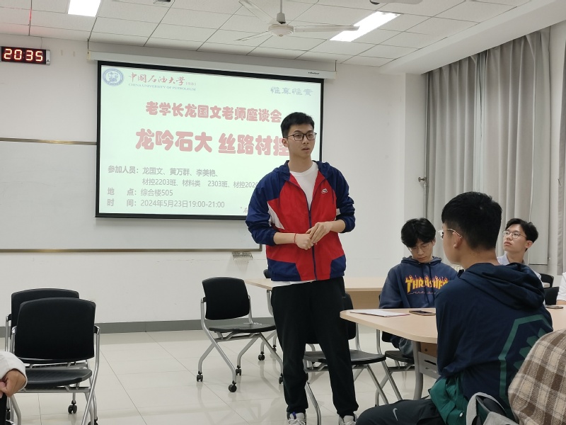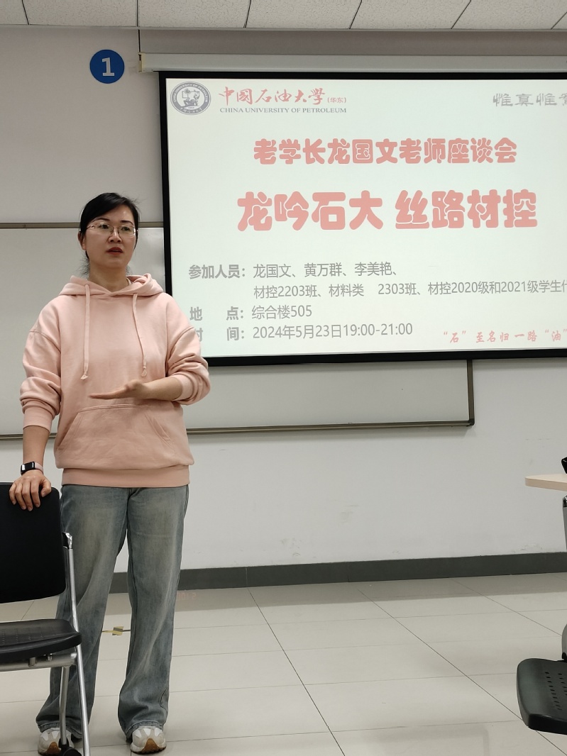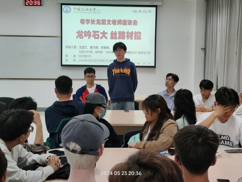 5月23日,材料科学与加工系在综合楼A505组织举办了“龙吟石大,丝路材控”主题座谈会。邀请了焊接工艺及设备专业(现 “材料成型及控制工程”专业)第一届(1990届)“老学长”龙国文老师为材料类2303班、材控2203班、2021级和2020级学生代表分享个人学习及工作经历,座谈会由材控2203班主任黄万群老师主持。