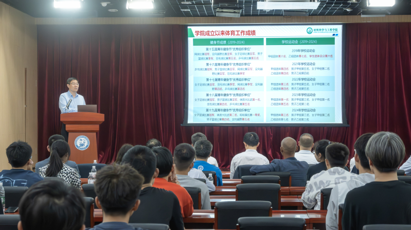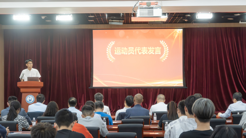 孙启龙首先对学院成立以来的体育工作成绩进行了总结,并对我院师生运动员们的共同努力予以赞扬,他指出,体育是特别重要的育人平台,体育训练是健全人格、锤炼意志、提升学生精气神的重要方式,学院成立以来,高度重视与支持学生体育工作,坚持五育并举,充分发挥体育育人功能,培养了一大批德智体美劳全面发展的时代新人。随后,孙启龙宣读了表彰文件,并对获得优异成绩的师生运动员和集体表以祝贺与鼓励。