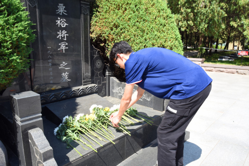 参观结束后,学员们步入位于纪念馆后方的孟良崮战役烈士陵园,这里埋葬着华东野战军在战役中牺牲的2865名烈士的忠骨。全体同志向粟裕将军及在孟良崮战役中牺牲的烈士们敬献鲜花,肃立默哀三鞠躬。随后大家举起右拳,在粟裕将军和几千烈士的见证下,重温入党誓词,表达对革命先烈的深切缅怀。