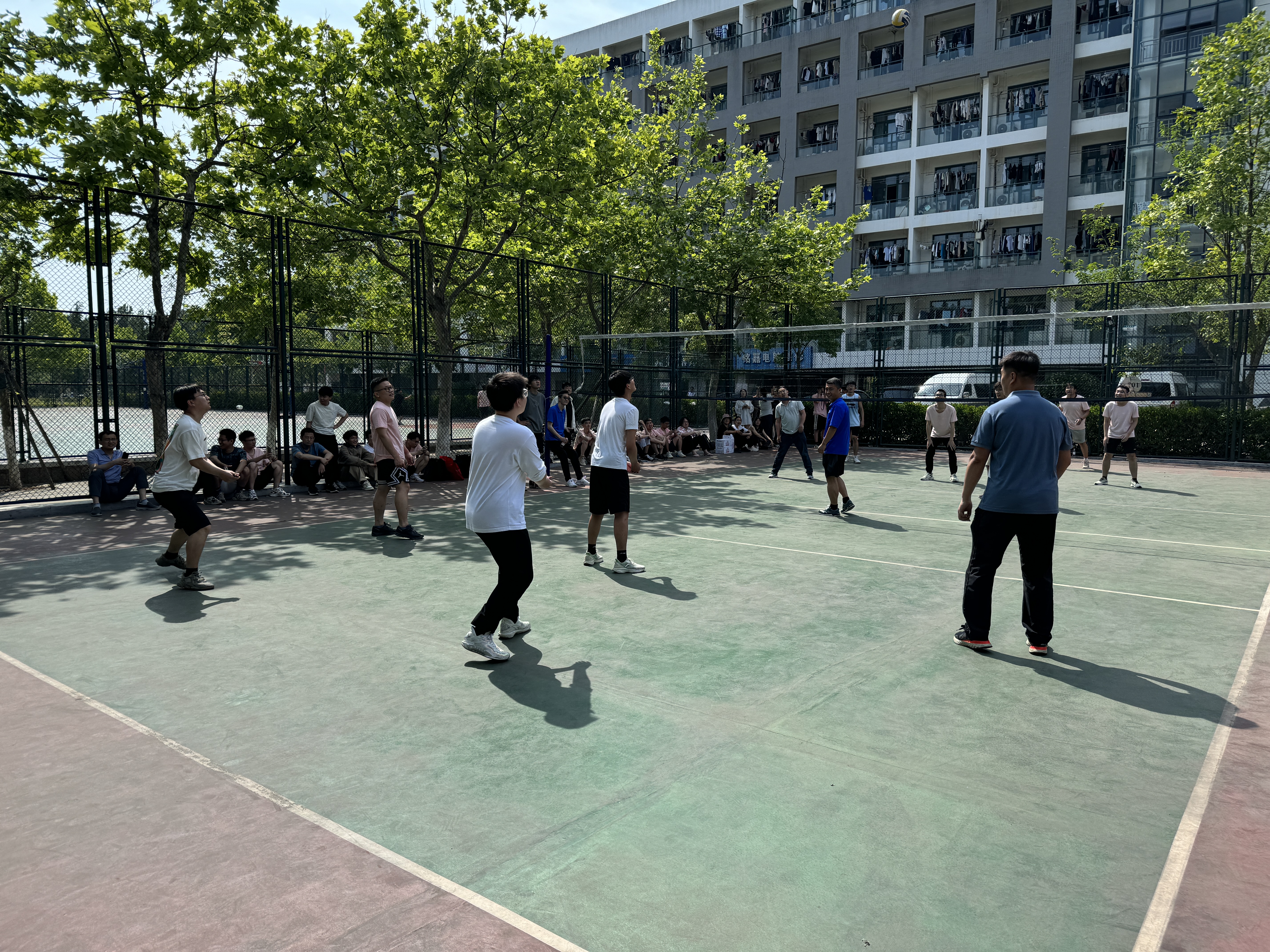 茶话会结束后,师生们齐聚排球场,共同参与了一场别开生面的排球友谊赛。在炎炎烈日下,师生们挥洒汗水、奋力拼搏,现场气氛热烈而欢快,充分展现了师生之间的深厚情谊。