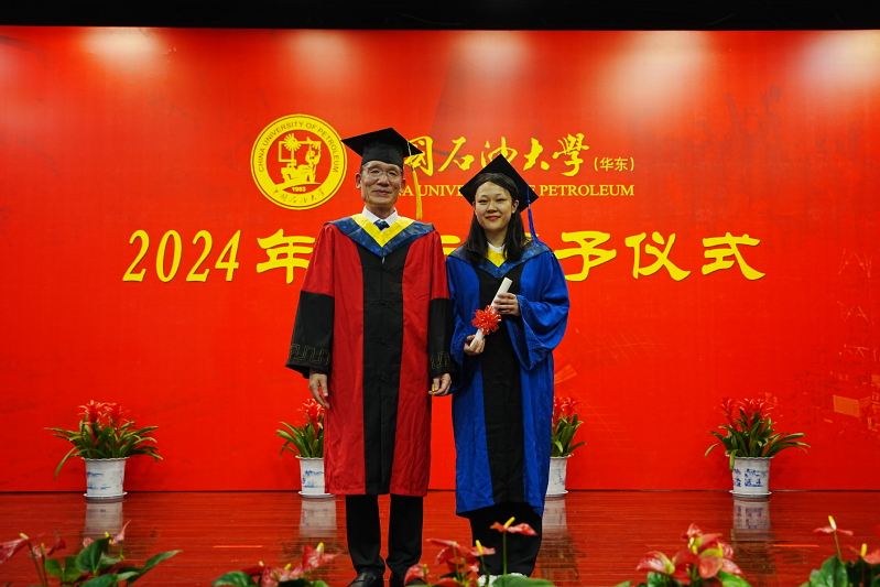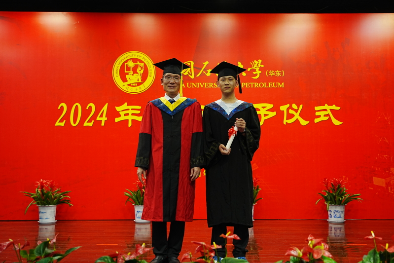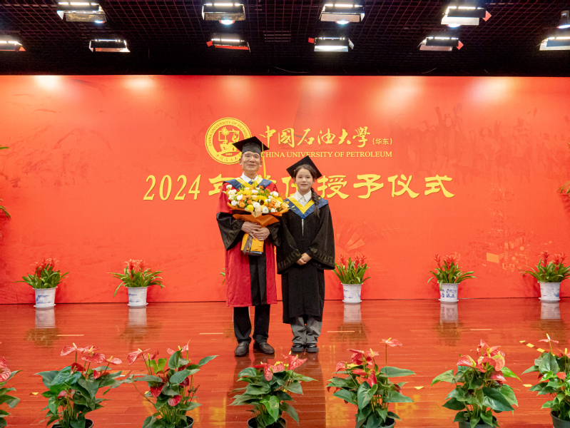 在热烈的掌声中,吴传德院长为每一位毕业生授予学位并合影留念。学位授予完成后,毕业生代表为吴院长献花,表达对学院的感激之情。
