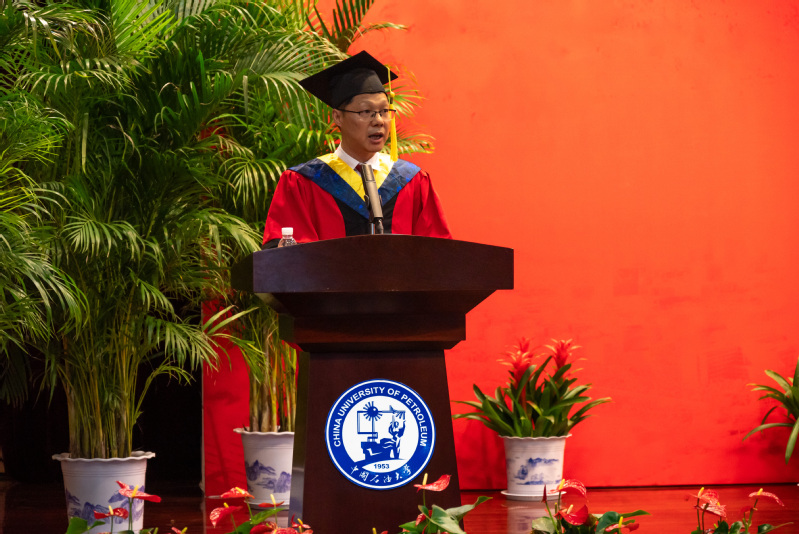 吴传德院长代表学院全体教职员工向圆满完成学业的全体毕业生表示热烈的祝贺,并对全体毕业生提出四点希望和期许:一是胸怀家国天下,做校训院训的践行者。希望毕业生将个人的理想追求融入党和国家事业之中,与时代同步伐、与人民共命运,努力成长为堪当民族复兴重任的时代新人。二是永葆求知渴望,做孜孜不倦的终身学习者。希望毕业生增加知识更新的紧迫感,延展知识和人生的边界,用自己的扎实所学为祖国的建设贡献智慧力量。三是敢于追求梦想,做志存高远的奋斗者。希望毕业生坚定理想,脚踏实地,不急于求成、不追寻捷径,认真思考时代之问,努力答好时代之题,做到知行合一。四是勇于乘风破浪,做幸福生活的乐观者。希望毕业生学会肯定自己,坦然面对艰难险阻,保持无畏风浪、不惧艰辛的从容。