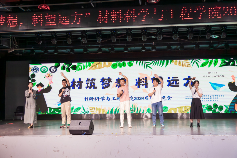 6月12日晚,学院于唐岛湾俱乐部三楼举办“材筑梦想,料望远方”2024届毕业晚会。学院党委书记门小刚、党委副书记孙启龙、材料化学系李学进副教授、学院全体辅导员及2024届毕业生参加晚会。晚会分为“材”韵青春、“材”情满怀、“材”梦远航三个篇章,以歌曲串烧、舞蹈、相声等形式表达对全体毕业生的美好祝福。希望2024届毕业生以更加坚定的理想信念,带着一往无前的自信与勇气,奔向更广阔的天地,继续弘扬石大精神,践行使命担当。
