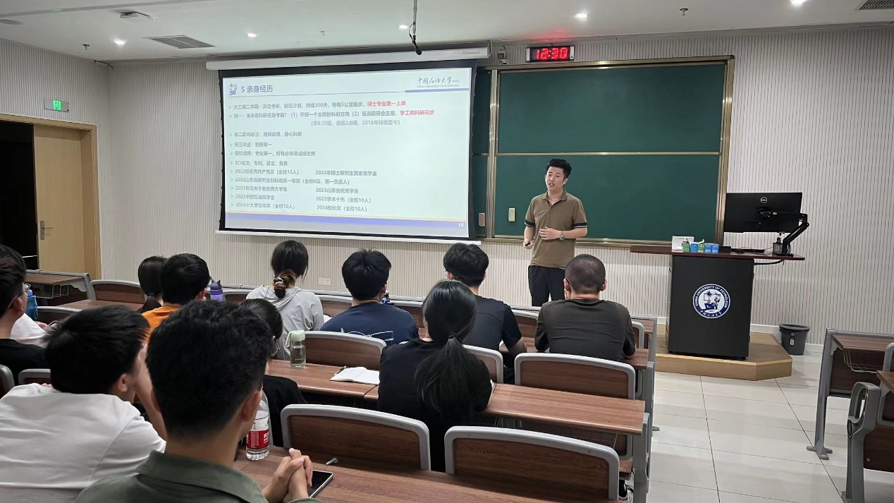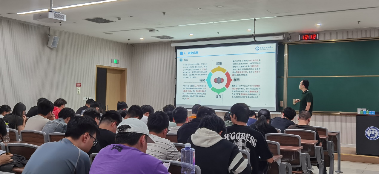 随后,材料物理系的师生代表围绕新材料研发、个人成长、人生规划等专题为同学们做了系列报告。都时禹教授以其深厚的学术造诣,引领同学们走进人工智能与材料开发的交融世界,深刻揭示了跨学科合作在推动材料科学创新中的关键作用。赵文老师则依托团队近年来的科研成果,分享了材料智能设计研究的最新进展与研究生培养的心得体会。李振老师结合自身在香港的留学经历,为同学们提供了海外求学的实用建议与避坑指南。李春玲老师则从材料腐蚀与防护的角度,探讨了技术创新如何为传统行业注入新活力。王兆杰老师的绿色人工碳循环技术报告,更是让同学们认识到新材料在应对全球气候变化中的重要作用,增强了他们投身绿色科技、贡献社会的责任感。博士生陈红宇作为学长代表,以其自身在石油大学求学与成长的经历,为学弟学妹们上了一堂职业规划课。从学术追求到职业选择,从国内深造到海外留学,鼓励同学们早做规划,勇敢追梦。