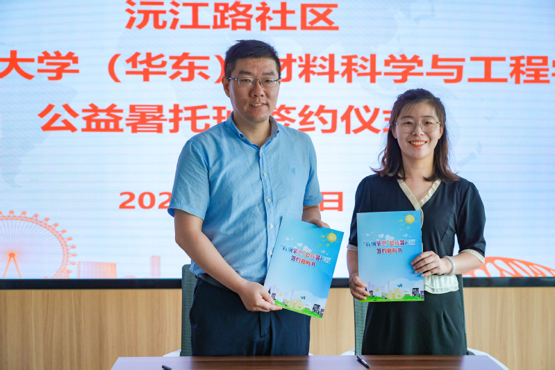 随后,孙启龙代表学校向沅江路社区授“优秀社区实践基地”,与张欣签署共建协议。王静、张强向“青桐学堂”学生分发文具。
