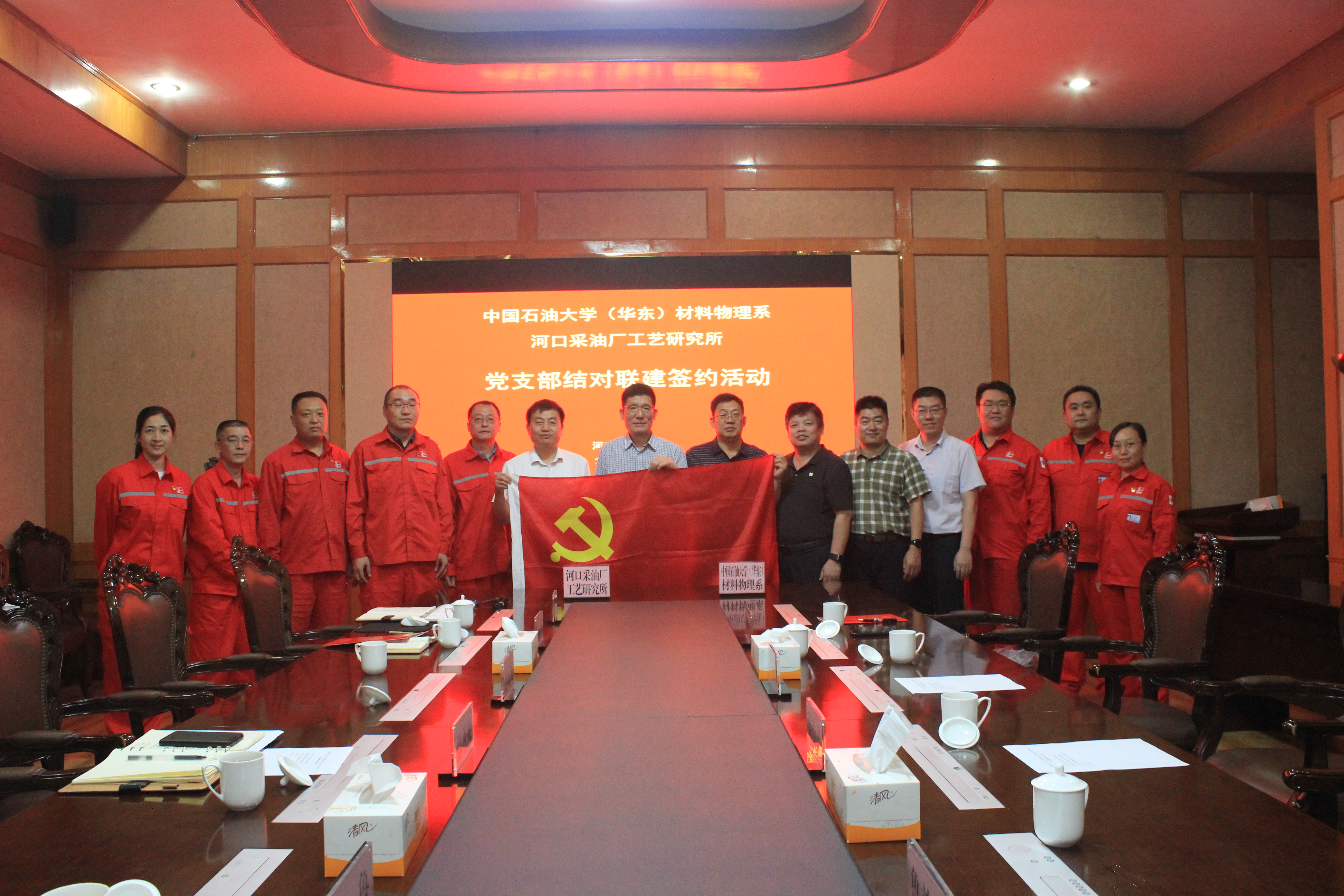 8月6日,材料物理系党支部与胜利油田河口采油厂工艺研究所党支部举行了结对共建仪式,并签署了校企党支部共建框架协议。此次活动标志着双方在产学研深度融合、党建交流互鉴及人才培养等方面开启了新的合作篇章。学院院长吴传德、学校人事处处长(材料物理系党支部共建单位负责人)孙道峰、学院副院长鲁效庆、学院党委副书记孙启龙、学院科技成果转化办公室主任胡松青教授,以及河口采油厂副厂长邵现振、技术首席曹忠礼、技术管理部高级主管陈鲁、工艺所书记张树勇、所长李刚、副所长李文轩等领导出席了签约仪式。