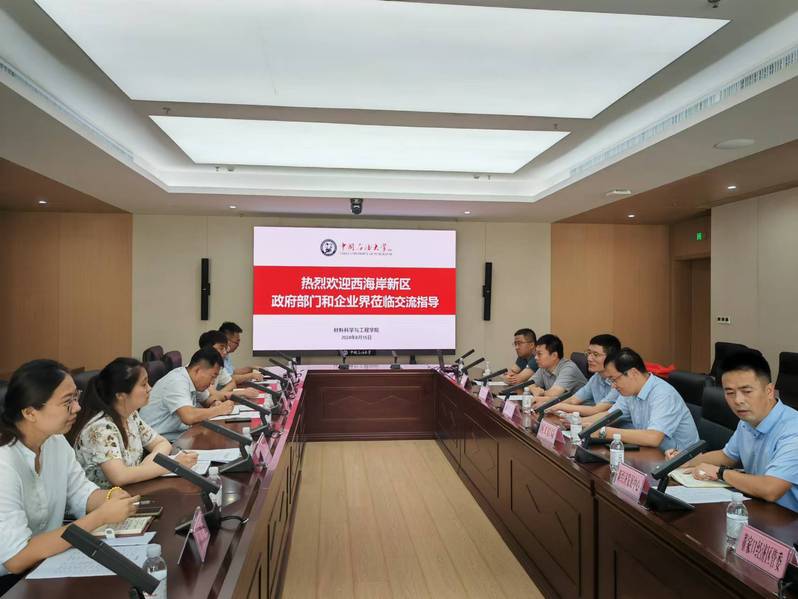 8月15日,西海岸新区工信局、发改局、新经济招商促进中心、金融办、董家口经济区、泊里镇人民政府等政府部门领导及青岛特钢、惠城环保、中船发动机、海湾化学等企业界领导等一行12人来学院进行科学研究及成果转化交流。院长吴传德在古镇口校区与政府部门及企业领导进行座谈交流。