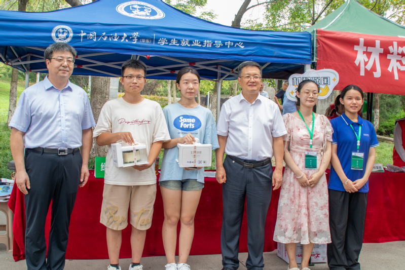 “入学第一天,就收到了学校领导的殷切祝福和学院准备的生日惊喜,我感受到了满满的心意和温暖,我一定会在石大努力学习,积极进取,让自己的人生绽放更多的可能性!”材料类2410班张颖激动地说道。报到当天,是张颖和材料类2401班张敬安两位新生的生日,王勇书记为新生送上了学院准备的印有院徽的“材料限定”款生日蛋糕,并为“寿星”送上祝福:“材料专业前景广阔,大有可为,希望你们能够潜心笃行,躬耕不辍,学有所成!”