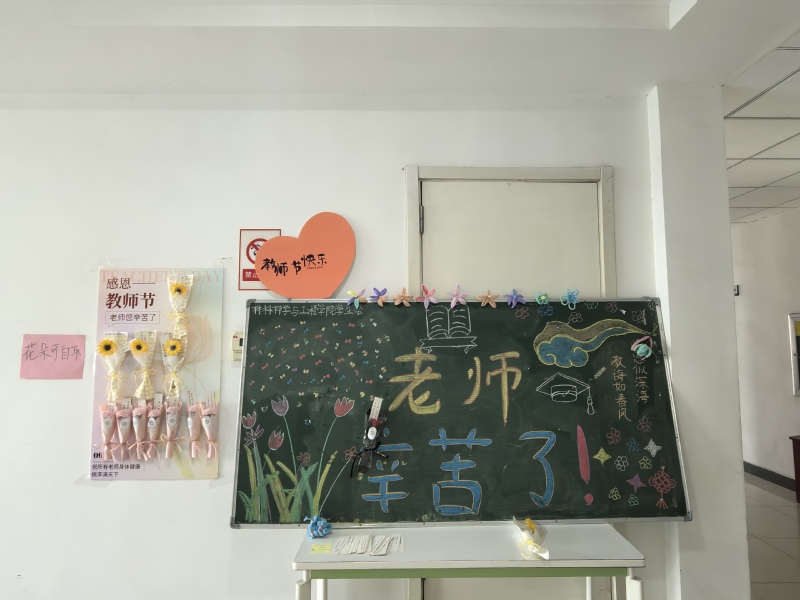 学院学生会手绘了“老师,您辛苦了!”专题黑板报,并准备了鲜花与亲手书写的寄语卡片,向学院全体教师致以节日的祝福;学院学生自发购买鲜花、制作贺卡等,走进教师工作室,为老师送上节日的祝福;军训场上,2024级本科生向承训教官送上鲜花,感谢教官严格细心的指导。除此之外,学院还通过官方网站、微信群、QQ群等形式为广大教师送去祝福,积极营造节日氛围。