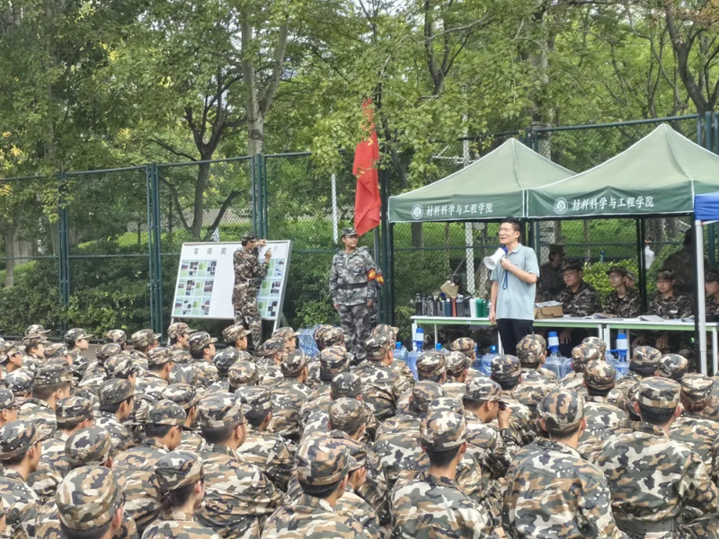 本次军训,学院2024级349名本科生组建一个军训营,编制为第六军训营,下编材风十二连、材华十三连、材韵十四连三个军训连,学院党委副书记孙启龙任军训营教导员。本次军训得到了学院的高度重视和大力支持,提前召开军训动员大会,明确军训期间的纪律要求,统一思想,提高认识,为军训的顺利开展提供了有力保障。军训期间,学院院长吴传德、党委副书记孙启龙前往军训场地看望慰问了参训师生,对教官和带队教师的辛勤付出表示感谢,对参训学生的训练成果和精神风貌给予充分肯定,为军训工作的圆满完成打下了坚实的基础。