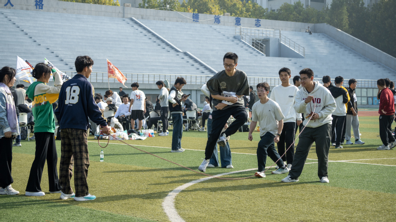 本次运动会设立100米、400米、800米、1500米和4*100米接力五个径赛项目和跳高、跳远、铁饼、铅球、标枪等六个田赛项目,各类比赛精彩纷呈。径赛跑道上运动员们风驰电挚,挥洒汗水;田赛赛场上他们身姿矫健,或纵身一跃,或奋力一抛,不断向更高成绩奋力拼搏。同学们站在跑道两旁,为运动健儿呐喊助威,运动员们在一声声“加油”中冲刺、跳跃,展现出材料学子奋发向上、敢打敢拼的精神风貌。此外,本次运动会还开设有同心鼓、8字跳绳、沙包掷准第趣味项目,旨在促进全员参与,享受运动的快乐。趣味比赛为运动会带来了很多乐趣,各班参赛选手在比赛中默契配合、相互协作、争取佳绩。经过激烈角逐,最终材料类2401班、材料类2410班、材料类2402班取得团体排名前三的优异成绩,材料类2405班获得优秀组织奖。