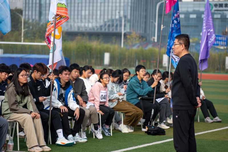 开幕式上,孙启龙老师致辞勉励2024级新生,他强调,体育运动可以增强体质、强健体魄、锻炼意志,涵养青年学生的精气神,希望同学们以昂扬的斗志和拼搏的精神投入到本次运动会中,赛出水平、赛出风采,在接下来的大学生活中能够积极拼搏、全面发展。在一片热烈的掌声和欢呼声中新生运动会正式开始。