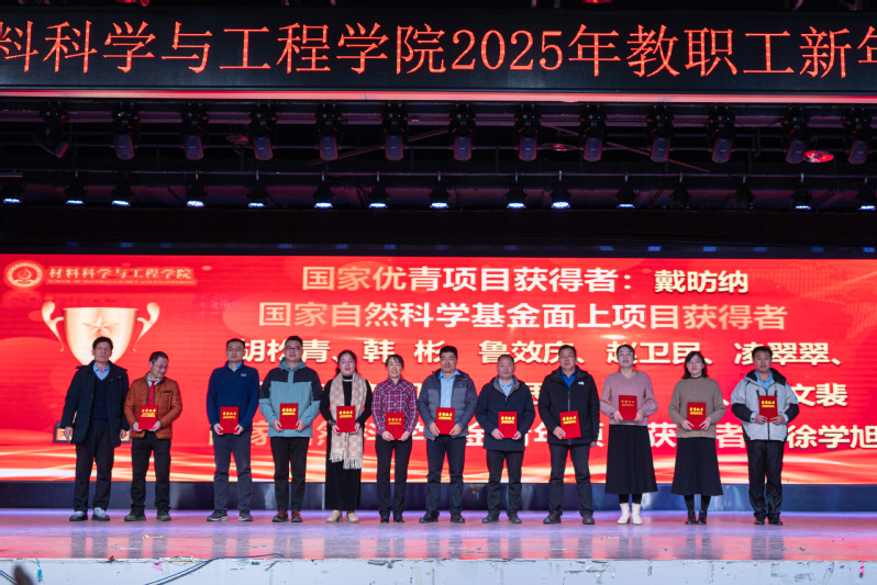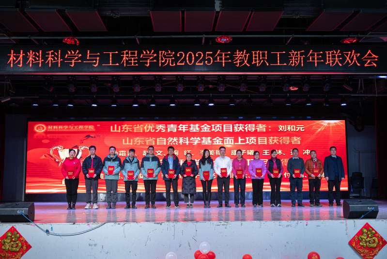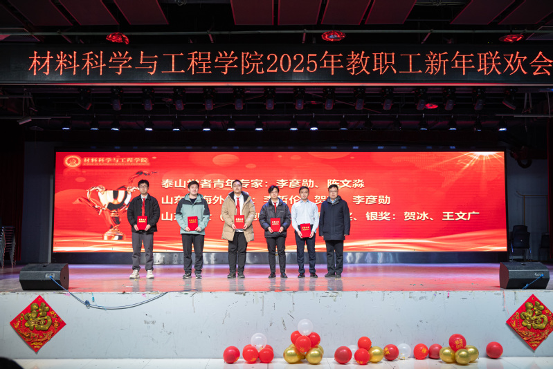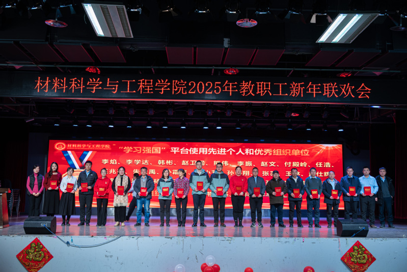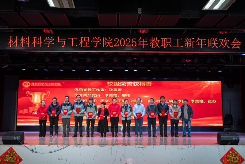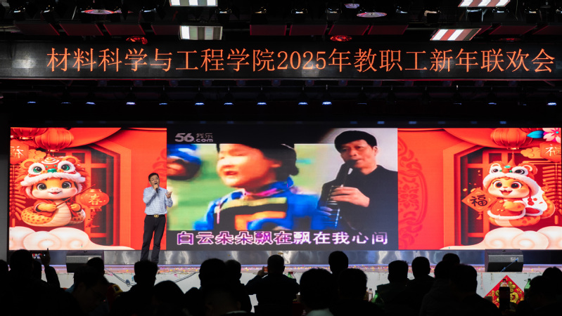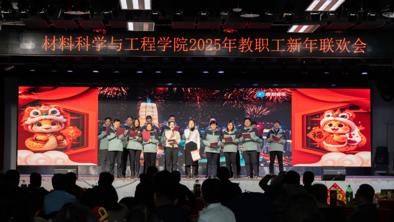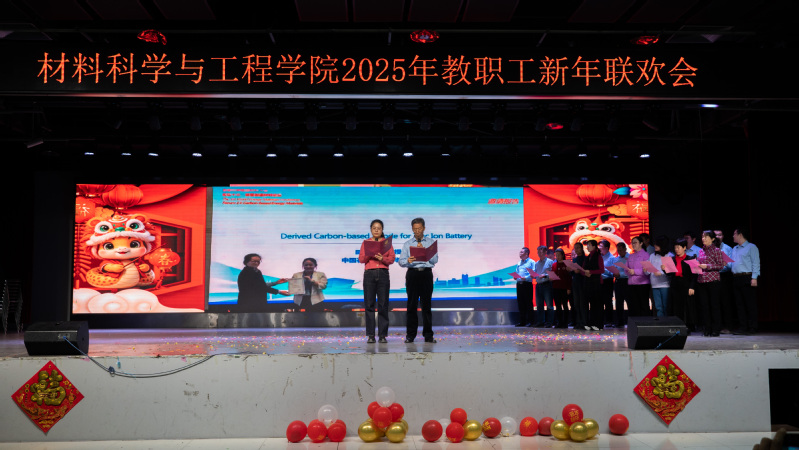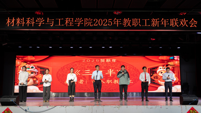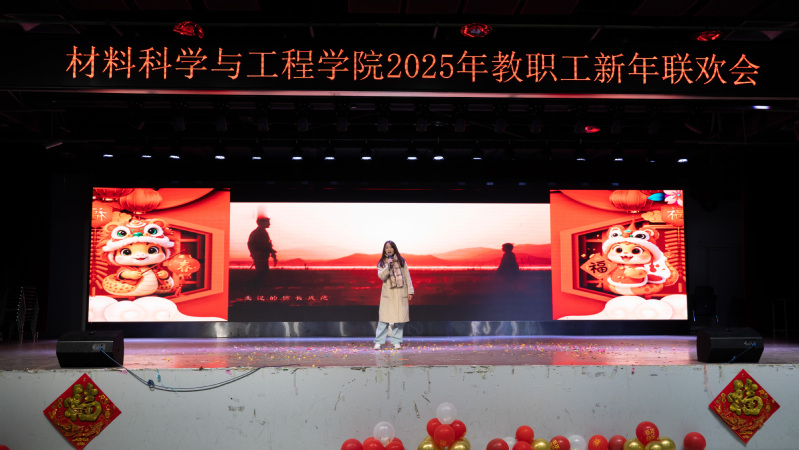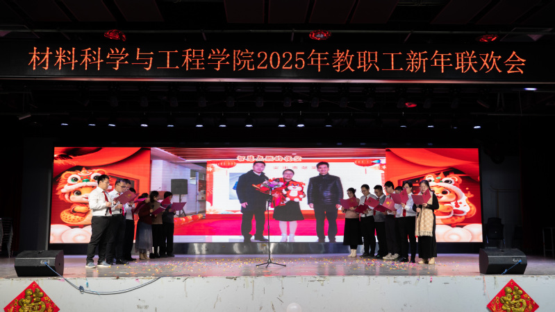总结表彰大会结束后,新年联欢会在新入职教师带来的《三句半》中拉开序幕,以独特、幽默的方式展现了他们对工作的热情和为学院发展作出贡献的决心;材料物理系老师带来的歌曲《欢乐中国年》旋律轻快,营造了欢快喜庆的氛围;新能源材料系老师带来的歌曲《如愿》,带领现场观众共同感悟跨越山河、世代相传的赤子之心;学院办公室老师以歌曲联唱《男儿当自强+明天会更好》,展现出了材料人勇毅前行向未来的担当与振奋;材料化学系带来的歌曲《相亲相爱》,彰显了tyc41183太阳成集团大家庭的团结精神;本研材料2401班的胡皖青以一首悠扬婉转的《阿刁》,唱出了材料学子的坚毅无畏与英气傲然;材料科学与加工系老师带来的歌曲联唱《童年+让我们荡起双桨+送别》,带领现场观众重温童年的美好时光,在歌声中寻找纯真与快乐;学院特聘教授刘营带来歌曲《呼伦贝尔大草原》,歌声浑厚深沉、悠扬朴实,仿佛带领观众走进辽阔壮美的大草原。精彩的节目中穿插了抽奖互动环节,现场气氛活跃、其乐融融。