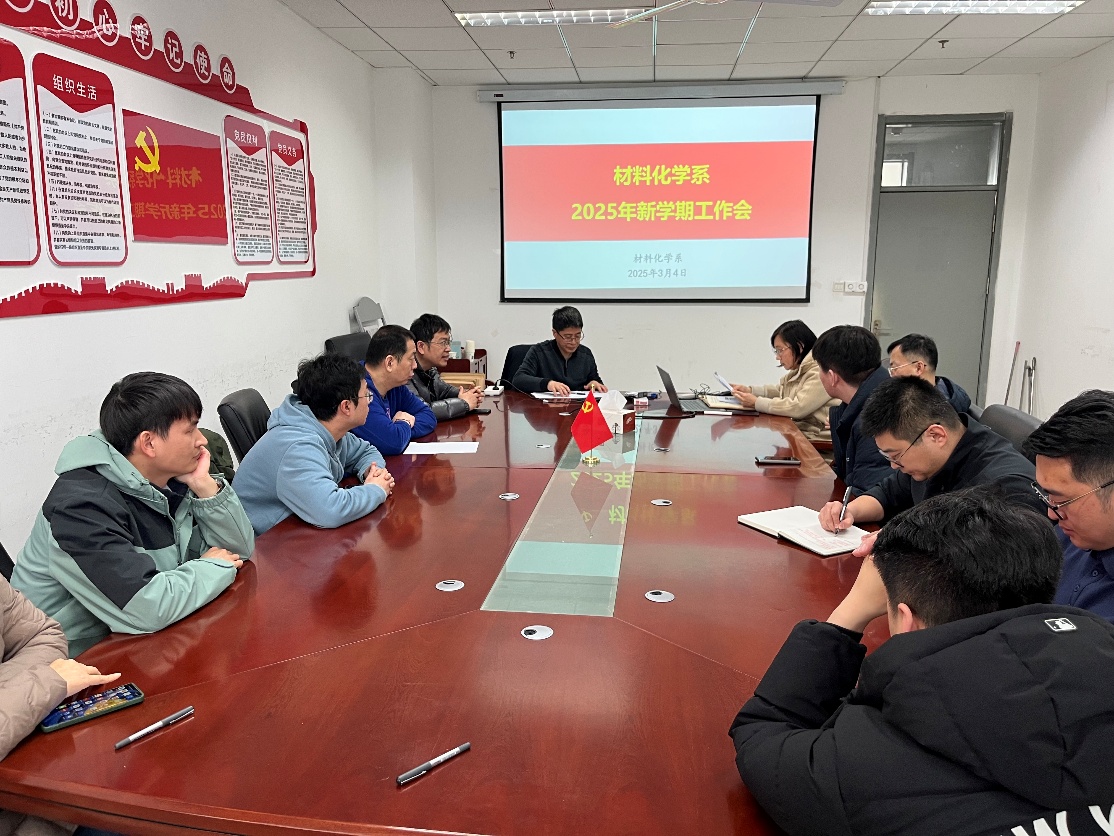 3月4日上午,材料化学系在工科E514召开新学期工作会议,旨在深入贯彻落实学校新学期工作会议精神,明确新学期工作目标与任务。会议由系党支部书记孙海翔主持,全系教师参加了会议。