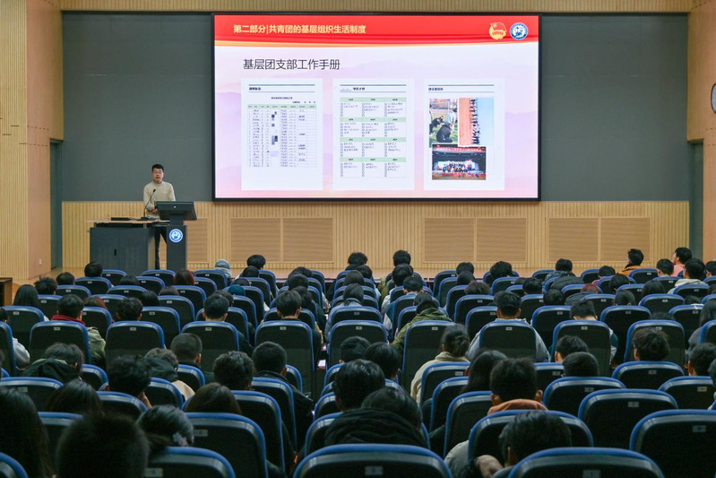 本次团课的第一部分,褚奇为同学们讲解了基础团务知识。他从共青团基层组织、共青团基层组织生活制度、共青团的历史、我校及我院的共青团工作四个方面展开,系统梳理了团员发展、团员教育评议、团日活动开展等基础工作,并对团旗、团徽、团歌的使用规范进行了说明。