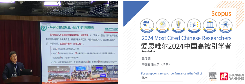2025年3月25日,爱思唯尔(Elsevier) 重磅发布2024“中国高被引学者”(Highly Cited Chinese Researchers)榜单,学院两位教授上榜,分别为化学学科入选者吴传德教授和材料科学与工程学科入选者孙道峰教授。