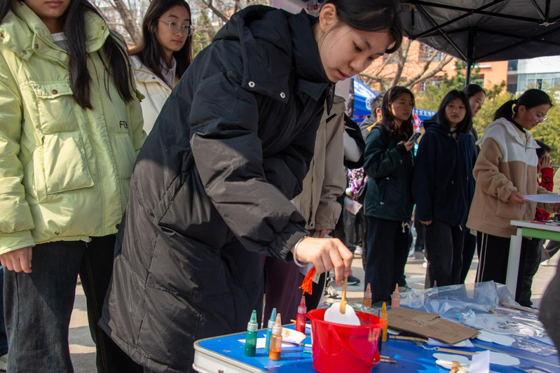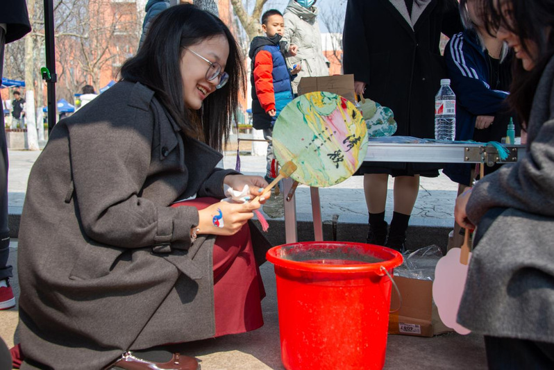 39日,思美节开幕式游园会上,学院分别在古镇口校区和唐岛湾校区开展了“思与漆会,美存扇绢”漆扇制作体验活动。参与师生执一柄漆扇,以传统工艺为笔,将心中对美的理解倾注于漆扇之上,书写女性的优雅华章,绽放独特的芳华。五彩斑斓的漆扇,在阳光的照耀下熠熠生辉,承载着深厚的文化底蕴,传承了精美的非遗技艺。