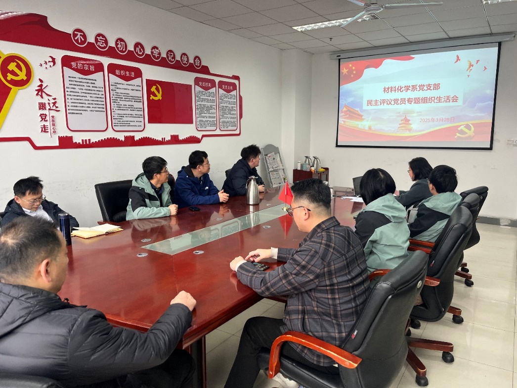 3月28日,材料化学系党支部在工科E514会议室召开2024年度组织生活会暨民主评议党员会议,同步开展深入贯彻中央八项规定精神学习教育启动会。会议由党支部书记孙海翔主持,支部全体党员参加了会议。