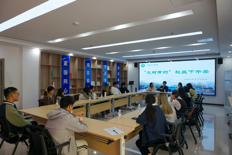 促进师生间的交流沟通增进2024级本科生对材料化学专业的了解4月24日下午学院在18号楼“一站式”学生社区服务中心举办了第十二期“大材有约”社区下午茶活动。学院材料化学系张晓云教授、孙海翔教授及部分2024级本科生参与活动活动由2024级辅导员卢海燕主持。