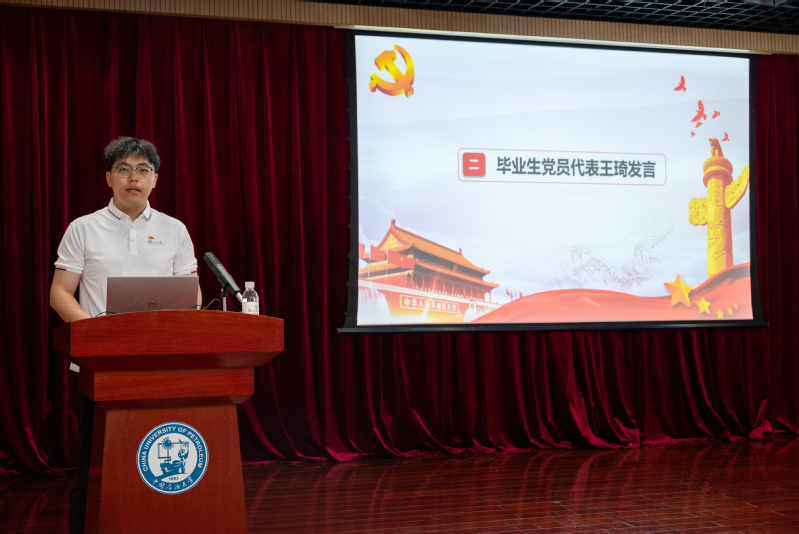 王琦同学代表本科毕业生党员发言 罗钰摄影