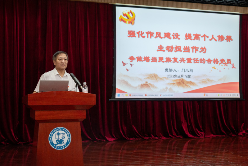 门小刚书记在唐岛湾校区为全体本科毕业生党员讲授题为《强化作风建设,提高个人修养,主动担当作为,争做堪当民族复兴重任的合格党员》专题党课,从“习近平总书记关于全面从严治党的重要论述”、“深入贯彻中央八项规定精神学习教育的主要内容”、“做堪当民族复兴重任的合格党员”三个方面进行了深入浅出的讲解。门小刚书记寄语全体毕业生党员要立志成为政治站位高、家国情怀高、学术学识高、格局视野高、领导能力高的“五高”人才;要坚持“慎独、慎微、慎言、慎行”,提升个人修养;要构筑“主动而为、成熟理性、问题导向、系统理念”思维,成就美丽人生。