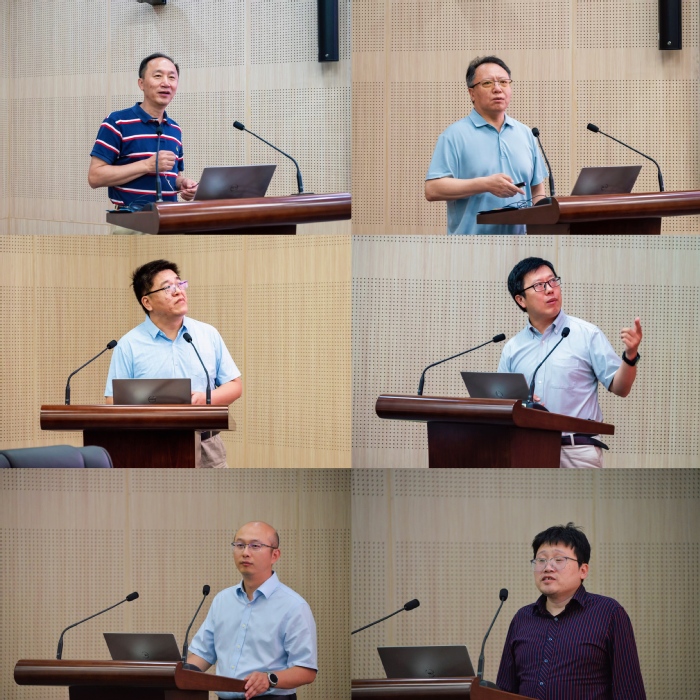 在材料学科发展研讨会环节,耿林教授、杨国昱教授、岳永海教授、严克友教授、黄元教授和高级工程师何佳捷分别就非连续增强金属基复合材料、硼镍(铜)钨氧簇的缺位导向合成及其硼氧簇形成机理、超硬高韧可自愈纳米孪晶金刚石复合材料、金属卤化物新能源材料和器件、二维材料、中车成型科技创新发展情况、物理与数据双驱动下的能源材料智能设计方法和平台应用等方向的研究进展作了非常精彩的学术报告。学院4位青年教师汇报了钙钛矿材料和电解水制氢催化材料等研究方向的最新成果,各位专家给予了充分的肯定和指导,并就相关研究内容进行了深入交流。