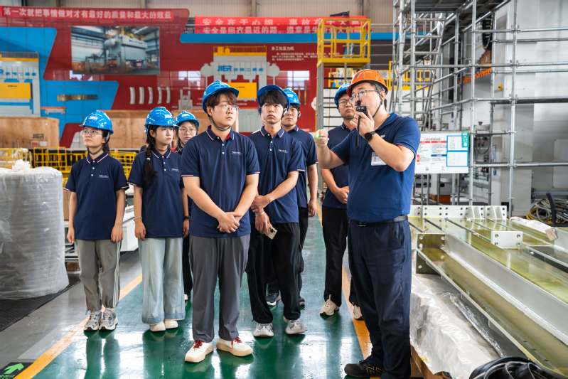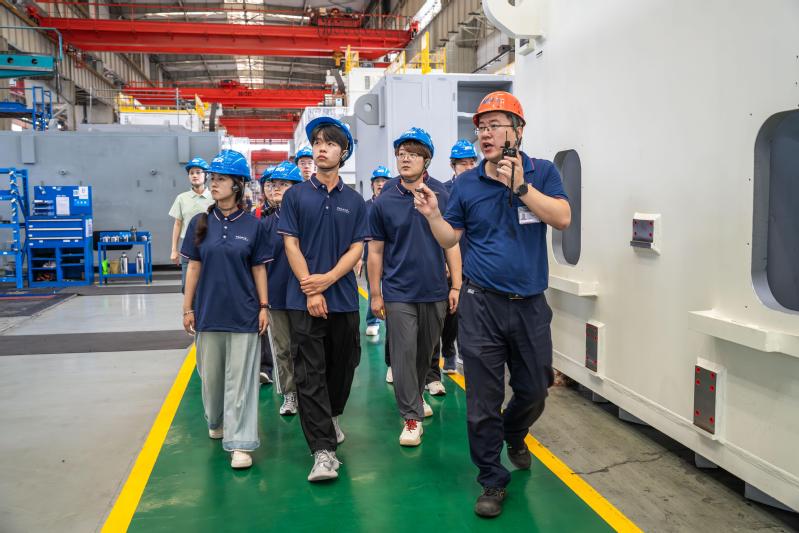 “课本上学的材料力学性能指标,在这里化作了钢铁巨兽。实践队成员严鸿泰感慨道。在重型压力机装配车间,队员们近距离观察了世界领先的机械压力机装配过程。企业自主研发的智能控制系统让人印象深刻通过物联网技术,设备运行数据实时上传云端,实现远程运维。这种将传统机械与信息技术深度融合的创新实践,为队员们打开了智能制造的认知视野。