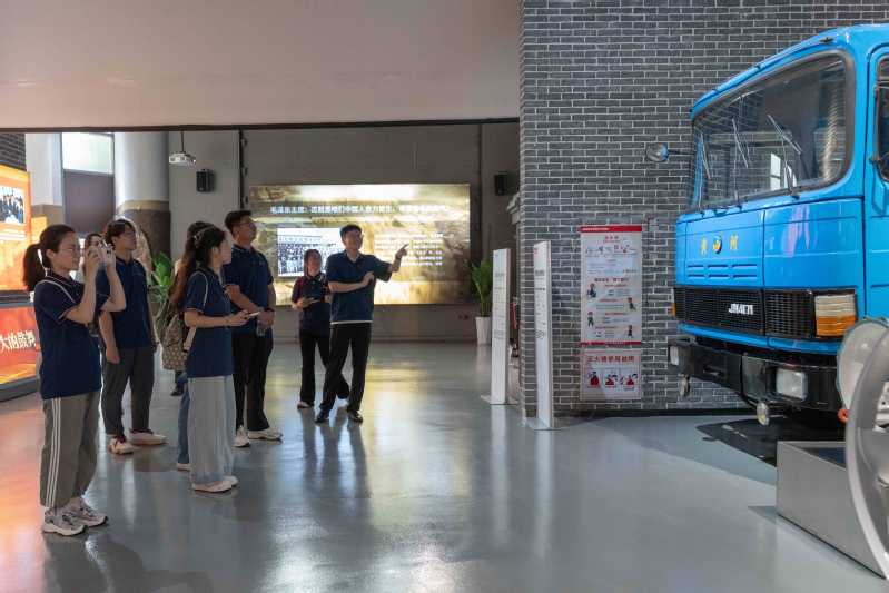 材韵华章实践队首站来到山东济南中国重汽集团。在中国重汽博物馆,以新中国第一辆重型汽车——“黄河JN150”为起点,队员们系统回顾了中国重汽从1935年初创到成为全球重卡行业领军企业的跨越式发展历程,感受着重汽人守正创新、勇立潮头的精神。