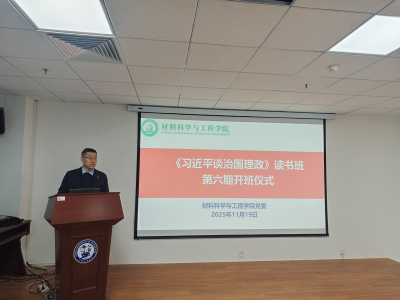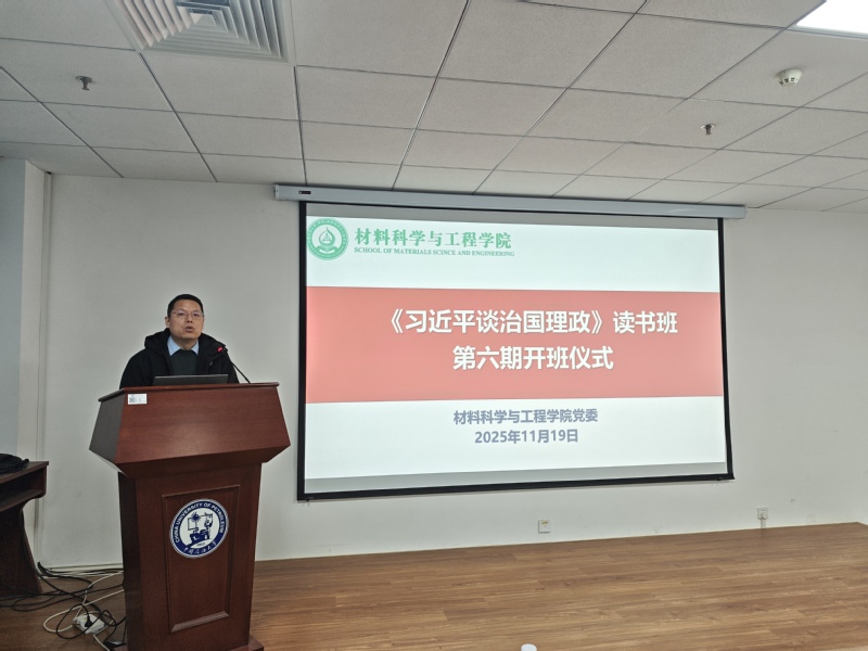 开班仪式伊始,读书班老学员代表、有序孔材料制备与应用实验室学生党支部书记武栋同志分享了参加读书班学习的感悟和收获,号召全体学员学好用好《习近平谈治国理政》系列著作;2025级研究生第二学生党支部书记霍文静同志代表新学员发言,表达了对参加读书班学习的期待,表示将会珍惜和利用好读书班学习平台,真正用党的创新理论来武装头脑和指导实践。随后,与会学院领导为新学员代表授书,勉励新学员认真研读,将学习成果转化为务实进取、推动工作的强大动力。孙霜青教授分享了自己对《习近平谈治国理政》系列著作的学习感悟和支部建设经验。他勉励学员们要用好各类学习平台,从《习近平谈治国理政》中汲取营养和方法,要融会贯通学、一以贯之学、结合实际学,基层党建工作要抓好干部队伍,扎实开展“三会一课”,注重总结凝练建设经验和成果,促进党建工作与业务工作深度融合,利用党建促进科研发展。