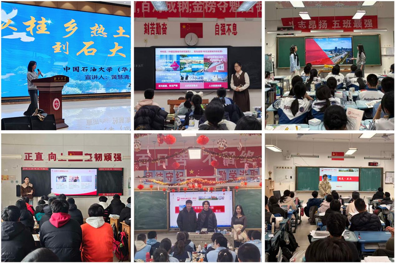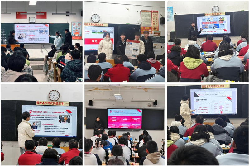 多支实践队利用寒假重返高中母校,开展“学生招生宣传大使活动”“学生资助宣传大使活动”等宣讲活动。他们通过精心准备的宣讲会、互动交流等形式,向学弟学妹们详细介绍学校的办学特色、优势学科、校园文化和招生政策,并分享自己的大学学习经历与成长感悟。这些活动不仅搭建起高校与中学的桥梁,也激励了广大高中学子勤奋学习、规划未来,展现了石大学子的良好风貌与感恩之情。
