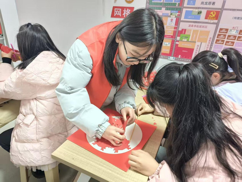 实践成员开展指尖魔法剪纸课堂 邵涵韵摄