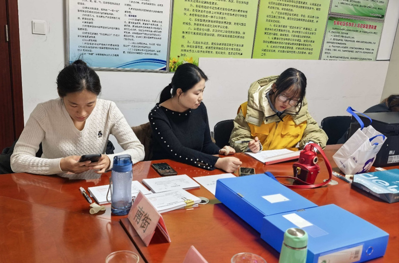 实践队成员正在协助社区办公 邱靖涵摄