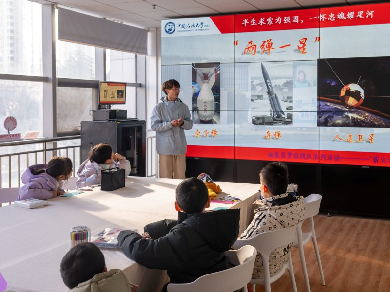 青年学子们将党的创新理论学习与社会实践深度融合,化身理论“宣讲员”和青春“陪伴者”。油星筑梦宣讲团走进青岛市莲花山社区与威海市郭永怀故居,以“薪火学堂”为舟,以实地追访为径,开展了一场融故事讲述、动手实践、沉浸研学与艺术创作为一体的主题实践活动。他们将沉睡于史册中的“两弹一星”精神轻轻唤醒,化作可触的温度、可感的脉动、可承的薪火,在新时代的土壤里播下信仰与梦想的种子。石油勘探队走进东北抗联雕塑馆,通过深情讲解杨靖宇等先烈事迹,开展红色教育。他们将凝固的雕塑转化为生动的历史叙述,带领观众重温抗联十四年艰苦卓绝的奋斗历程。红色传承实践队走进海军博物馆,以退役战舰与厚重史实为课堂,开展沉浸式国防教育。通过追溯从甲午悲歌到航母崛起的奋斗历程,把波澜壮阔的海军史化为可感的信仰力量。活动激励参观者铭记历史、赓续血脉,强化了捍卫海疆、担当时代重任的理想信念。