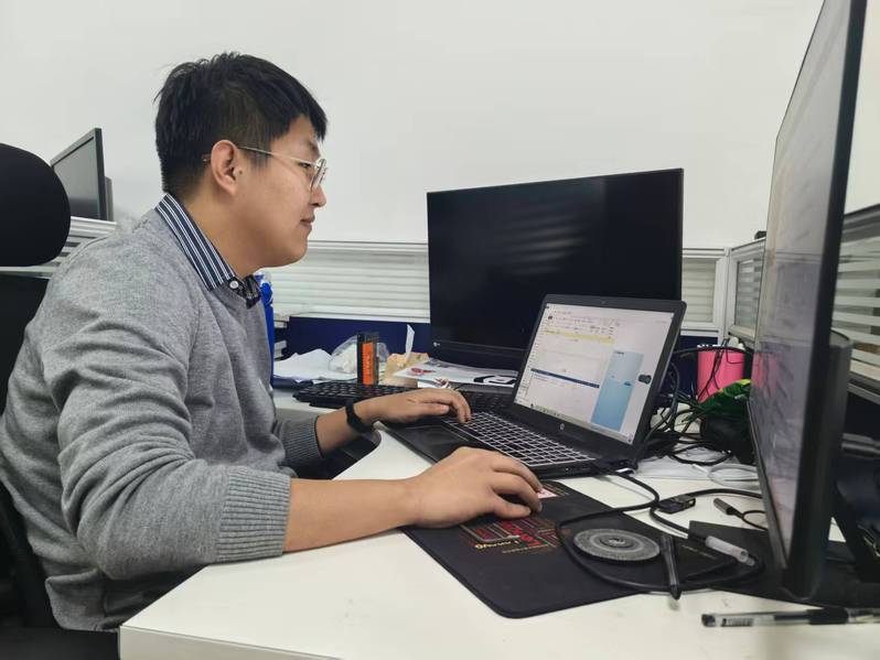 研究生在工作站查阅文献、处理数据