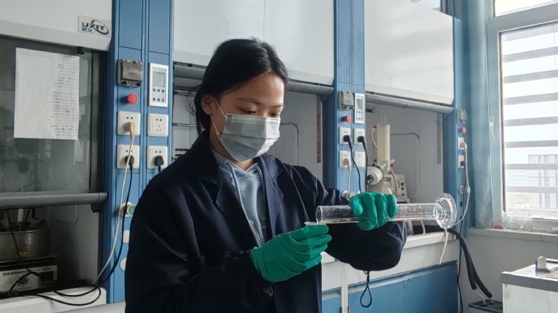 学生在实验室内专注地开展实验