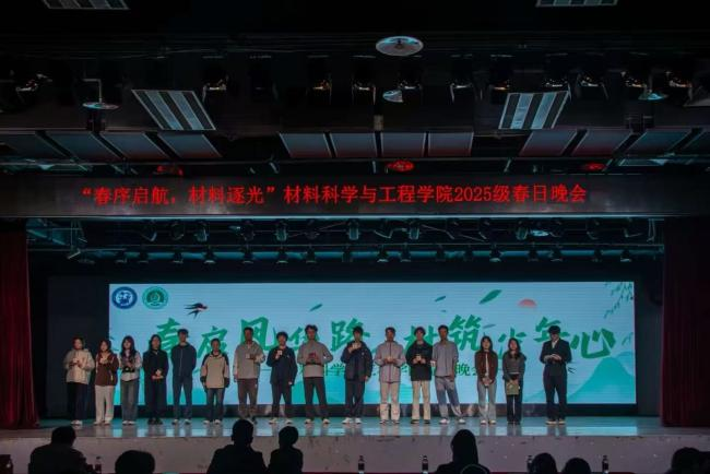 为丰富校园文化生活,陶冶学生艺术情操,展现材料学子朝气蓬勃的精神风貌,增强学院凝聚力与向心力,4月25日晚,tyc41183太阳成集团“春序启航,材韵逐光”春日迎新晚会在唐岛湾多功能厅举行。学院党委副书记郭孟、团委书记褚奇、2025级班主任张一波、王璟岳、各年级辅导员以及2025级全体本科生齐聚一堂,共赴春日之约,同享青春盛宴。